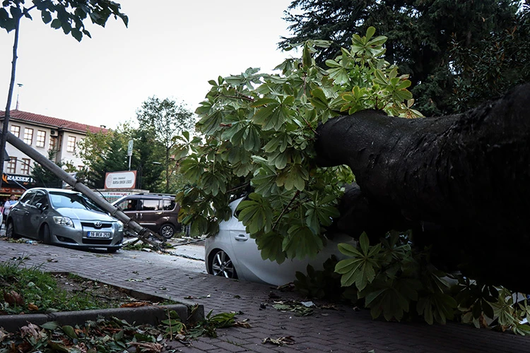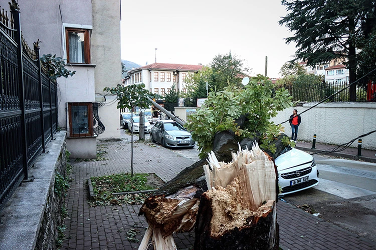 Kentte dün akşam saatlerinde başlayan ve ara ara etkisini artıran lodos dolayısıyla Osmangazi ilçesi İbrahim Paşa Mahallesi'nde devrilen bir ağaç ve bir elektrik direği park halindeki 2 otomobilin üstüne düştü.