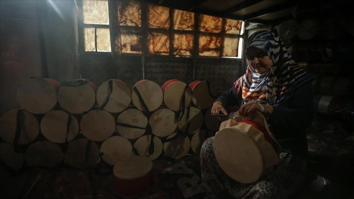 Tokat'tan temin ettikleri derinin, Fiskiye'nin ablası ve komşusu tarafından kasnaklara geçirilmesiyle üretimi tamamlanan tef ve davullar, müşterilere ulaştırılıyor. Atölyede, okullarda kurulan bando takımları için trampet de üretiliyor.