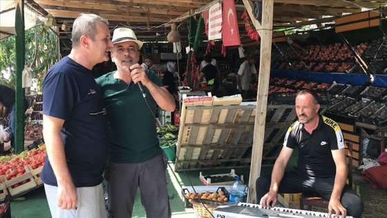Müşteriler ise canlı müzik yayınının manav dükkanına farklılık kattığını belirterek, keyifli bir ortamda alışveriş yaptıklarını ifade etti.
