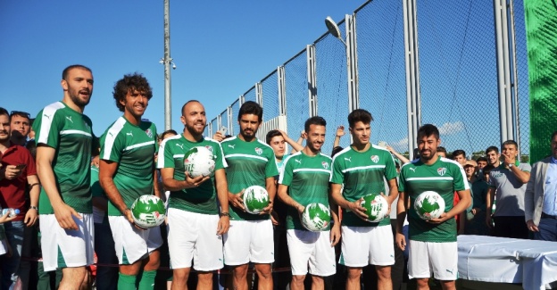 Bursaspor, yeni sezon öncesi kadrosuna kattığı 7 oyuncusu için taraftarları önünde imza töreni düzenleyerek gövde gösterisi yaptı.