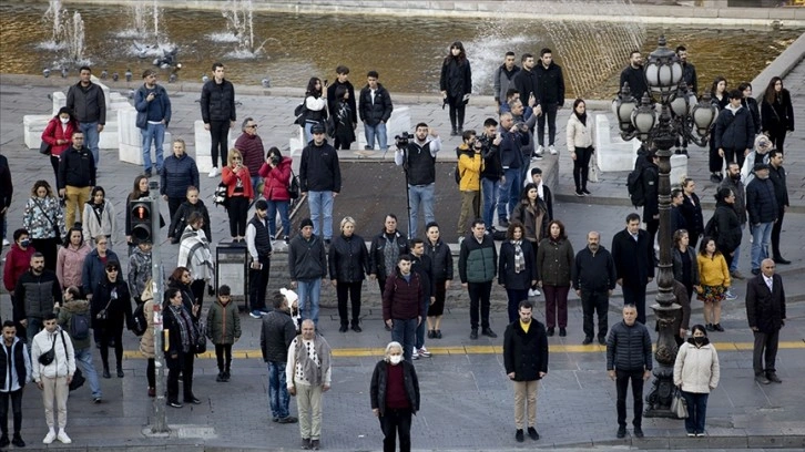 Ankara'nın en işlek noktalarında, hayat Ata'ya duyulan saygının işareti olarak bir dakikalığına durdu.