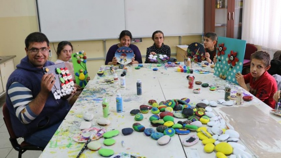 Öğrencilerin taşlara Türk bayrağı, çiçek, nazar boncuğu ve sevgiyi ifade eden resimler çizdiğini anlatan Yılmaz, engel durumuna göre atölye derslerinde takı çalışması, ağaç işleri ve çeşitli boyama çalışmaları da yaptırdıklarını söyledi.