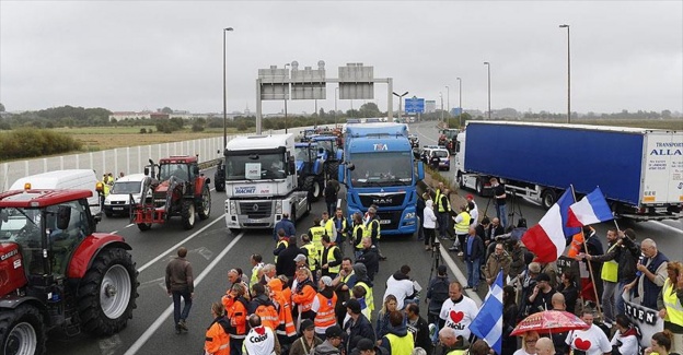 Calais'deki otoyola sabah saatlerinde çıkan traktör, kamyon ve tırlar, şehrin 5 kilometre yakınındaki sığınmacı kampı Jungle'ın kapatılması için trafiği felç etti.