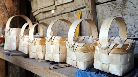 Erzurum'un Uzundere ilçesinde yaşayan Ahmet Aldemir, damarlı çam ağaçlarını kağıt inceliğindeki parçalara ayırdıktan sonra bunları suyla ıslatıp yumuşatarak yörede "çepik" olarak bilinen meyve sepetleri örüyor.