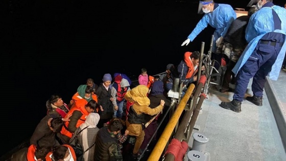 Yunan sahil güvenlik unsurlarınca Türk kara sularına itildiği belirlenen 56 göçmen kurtarıldı.