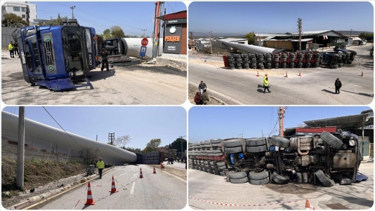 İlçeye bağlı Umurbey beldesinde rüzgar türbini pervanesi taşıyan ve sürücüsü öğrenilemeyen 34 HT 5327 plakalı tır, manevra esnasında devrildi. Yaralananın olmadığı kazada, jandarma ekipleri bölgede güvenlik önlemi aldı.