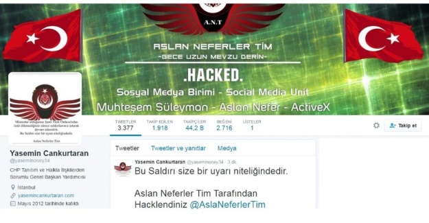 Türk hacker grubu "Aslan Neferler Tim" CHP Genel Başkan Yardımcısı Yasemin Öney Cankurtaran’ın sosyal medya hesabını hacklediğini duyurdu. Hacklenen sayfada şu yazılar yer aldı: