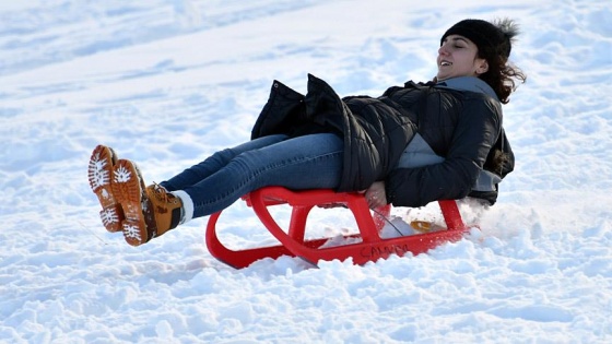 Beyaza gelinliğini giyen sarıçam ormanları içerisindeki kayak merkezinde hafta sonunu fırsat bilen vatandaşlar, 1. etap oteller bölgesindeki pistte kızakla kayarak karın keyfini çıkardı.