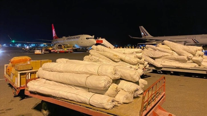 Cibuti'den Türkiye'deki depremzedelere yapılan ilk grup ayni yardım kapsamında 120 çadırın yanı sıra gıda ve hijyen malzemeleri gönderildi.