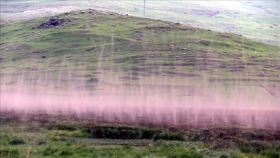 Bölgede oluşan yağış öncesi bir araya gelen sinek topluluğunun yerden gökyüzüne doğru uçuşu ilgi gördü.