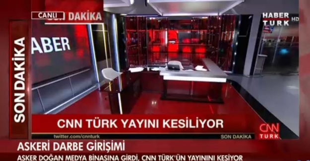 CNN Türk televizyonunu ele geçirmek isteyen bir grup darbeci asker, askeri helikopterle televizyon binasının çatısına indi. Buradan televizyonun yayın odasına kadar giren darbeci askerler, bir süre yayına el koydu. Polisin televizyona operasyon düzenlemesiyle binanın arkasında bir süre devam eden çatışmanın ardından askerler kelepçelenerek gözaltına alındı. Darbeci askerlerden 4 tanesinin teslim olmamak için direndiği ve polisin ikna çabalarının sürdüğü öğrenildi. Yaşanan çatışmada yaralanan bir polis memuru, vatandaşların omuzlarında alkış ve sloganlar eşliğinde ambulansa bindirildi.