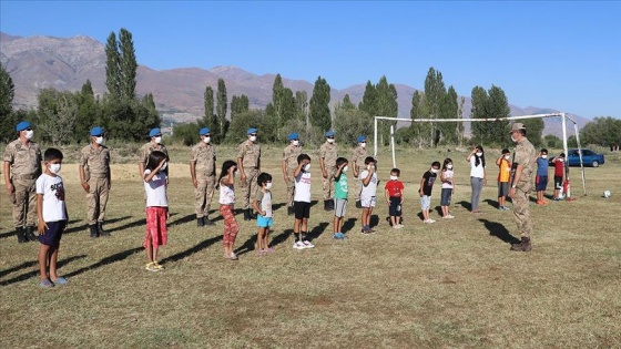 Albay Altıntaş ve askerlerin çocuklara hediyeler verip futbol oynaması hem çocukların hem de ailelerinin takdirini topladı.