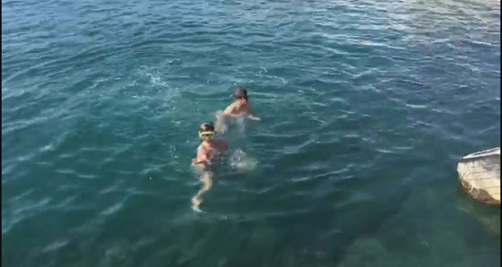 Muğla'nın Marmaris ilçesinde iki çocuk kış ortasında denize girdi. O anlar vatandaşlar tarafından cep telefonuyla kaydedildi.