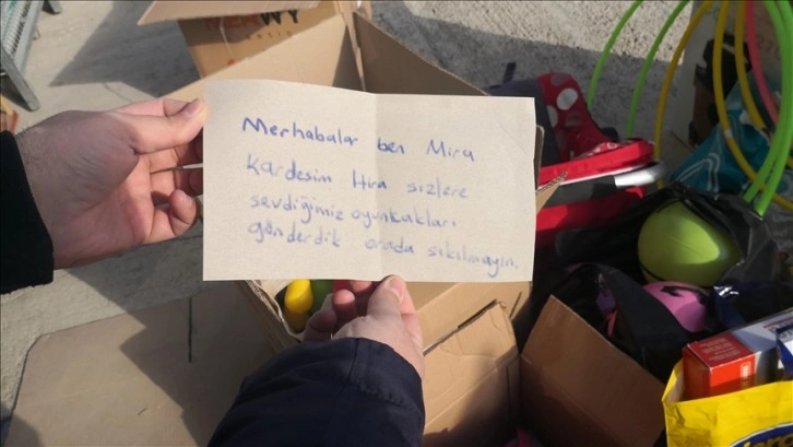 Yardım kolilerinde bulunan "Merhaba ben Fatıma ve kardeşim Eymen. Size oyuncak gönderiyoruz. Umuyoruz ki bu oyuncaklarla çok eğlenirsiniz.", "Merhaba ben Mira, kardeşim Hira. Sizlere sevdiğimiz oyuncakları gönderdik. Orada sıkılmayın." yazılı mektuplar, görenleri duygulandırdı.