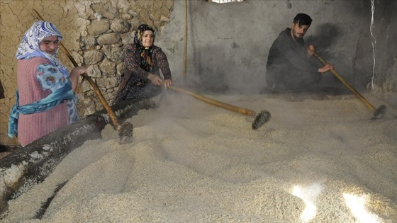 Hakkari'nin Çukurca ilçesindeki Narlı köyünde yaşayan Abdullah Kaynak ve ailesi, dedelerinden kalma asırlık değirmende, çiftçilerin geleneksel yöntemlerle yetiştirdiği susamı öğütüyor.