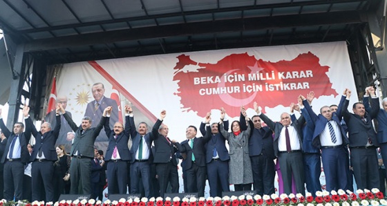 Eski Tevfik Sırrı Gür Stadyumunun bulunduğu alanda gerçekleştirilen mitinge, AK Parti Genel Başkan Yardımcısı Lütfi Elvan, MHP Genel Başkan Yardımcısı Mevlüt Karakaya, milletvekilleri, belediye başkan adayları ile iki partiden binlerce kişi katıldı. Tanıtım etkinliğinde konuşan Mevlüt Karakaya, vatandaşların katılımının yüksek olmasından dolayı mutlu olduklarını söyledi. Cumhur İttifakının ne anlama geldiğinin iyi anlaşılması gerektiğini vurgulayan Karakaya, "Cumhur İttifakı aziz Türk milletinin bize vermiş olduğu kutlu bir görevdir. Cumhur İttifakı 15 Temmuz FETÖ işgal girişimi felaketini idrak edenlerin ittifakıdır. Bu ittifak 7 Ağustos Yeni Kapıdaki milli ve yerli ruhu anlayanların ittifakıdır. Bu ittifak 16 Nisan referandumundaki milli şuuru okuyanların ittifakıdır. Bu ittifak 24 Haziran seçimlerindeki milli iradenin duruşunu anlayanların ittifakıdır. Bu ittifak ölüme giderken, 'yolculuk nereye?' diye sorulduğunda 'kızıl elmaya' diyenlerin ittifakıdır. Bu ittifak beklenmedik bir zamanda semalara yükselen, sela sesleri duyduğunda vatan zorda diye ölüme koşanların ittifakıdır. Bu ittifak Türk milletinin verdiği bir görevin ifasıdır. Bizim ittifakımız iki partinin öylesine bir seçim için yaptığı ittifak değildir. Bu ittifak zillet ittifakı gibi, siyaset pazarında kurulup, yerel yönetimler borsasında manilüpasyonlarla işlem yapan bir ittifak hiç değildir. Bu ittifak belediye değil, bu ittifak bekayı öncelemiştir. Bu ittifakın temeli melanetin tepemize çökmeye çalıştığı o 15 Temmuz gecesinde millet tarafından atılmıştır" dedi.