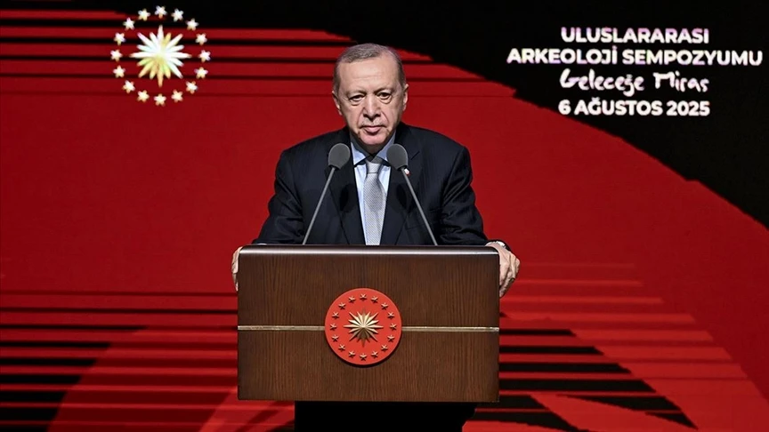 Erdoğan, Türkiye'nin arkeoloji alanında da çok zengin, çok köklü bir mirasın sahibi olduğunu, bu hazineyi ortaya çıkarmanın, belgelemenin, ihtimamla korumanın ve yeni nesillere en güzel şekilde bırakmanın bu bakımdan son derece önemli olduğunu vurguladı.