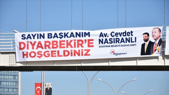 Türkiye Cumhurbaşkanı ve AK Parti Genel Başkanı Recep Tayyip Erdoğan'ın Diyarbakır ziyareti için Türkçe ve Kürtçe "Diyarbekir'e hoş geldiniz" yazılı pankartlar asıldı.