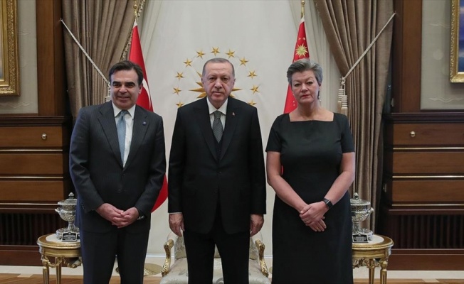 ANKARA (AA) - Türkiye Cumhurbaşkanı Recep Tayyip Erdoğan, AB Komisyonu Başkan Yardımcısı Margaritis Schinas ve AB İçişleri Komiseri Ylva Johansson'ı kabul etti.