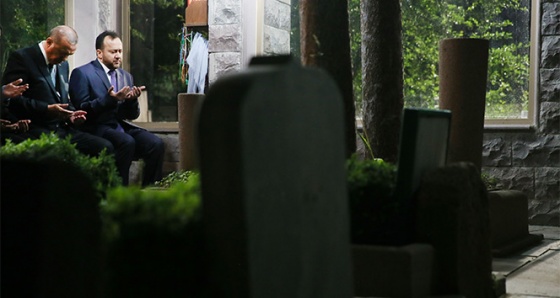 Abdurrahim Karakoç ve İslam tarihi yazarı Mustafa Asım Köksal'ın mezarlarının da yer aldığı türbedeki okunan Kur'an-ı Kerim'i dinleyen Erdoğan, dua etti. Erdoğan'a, Aile ve Sosyal Politikalar Bakanı Fatma Betül Sayan Kaya, Ankara Valisi Ercan Topaca ve Ankara Büyükşehir Belediye Başkanı Mustafa Tuna eşlik etti.