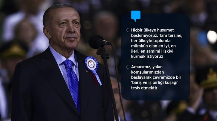 Özellikle son dönemde, bu yönde pek çok olumlu adım attık. Kimi konularda anlaşmazlık yaşadığımız ülkelerle ilişkilerimizi kazan-kazan ve karşılıklı saygı temelinde yeniden rayına oturttuk."