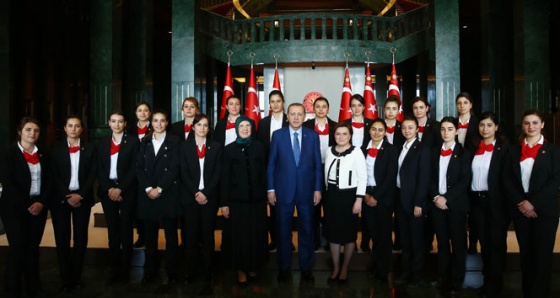 Cumhurbaşkanı Recep Tayyip Erdoğan, "8 Mart Dünya Kadınlar Günü" dolayısıyla Cumhurbaşkanlığı Külliyesi'nde resepsiyon verdi. Resepsiyona, aralarında vali, rektör, temizlik görevlisi, polis, şehit annesi, şehit eşi ve köy korucularının da yer aldığı 81 ilden gelen yaklaşık 250 kadın katıldı.