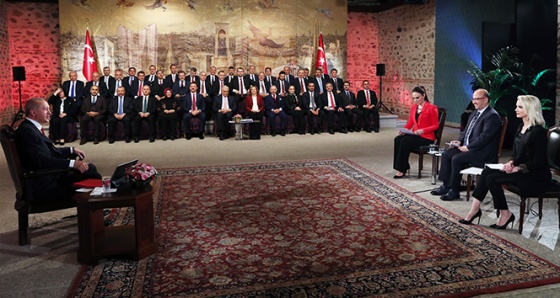 Cumhurbaşkanı Recep Tayyip Erdoğan, TRT Haber ortak yayında gündemi değerlendiriyor. Cumhurbaşkanı Erdoğan, "Karşımızda bir zillet ittifakı, bir illet ittifakı var. Bunun karşısında da Cumhur İttifakı olarak bizim güçlü bir çıkış yapmamız lazım. Bu yerel seçimleri de kesinlikle Cumhur İttifakı'nın lehine çevirerek özellikle de 1 Nisan'dan itibaren Türkiye'de yeni bir güne çıkmamız lazım. Çünkü çıkıyor bir tanesi diyor ki, ‘bu bir intikamdır.'