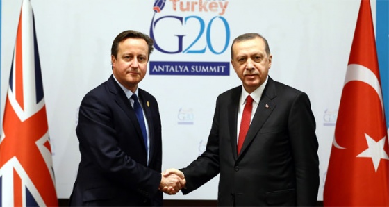 Cumhurbaşkanı Recep Tayyip Erdoğan, Antalya Belek’te devam eden ve Türkiye’nin dönem başkanlığını yaptığı G-20 Liderler Zirvesi çerçevesinde İngiltere Başbakanı David Cameron ile bir araya geldi. Yaklaşık 20 dakika süren görüşmede ağırlıklı olarak Suriye, mülteci ve terör konuları üzerinde durulduğu belirtildi.