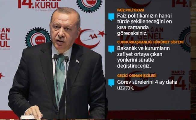 Erdoğan, Hak-İş 14. Olağan Genel Kurulu'nun hayırlara vesile olmasını diledi.