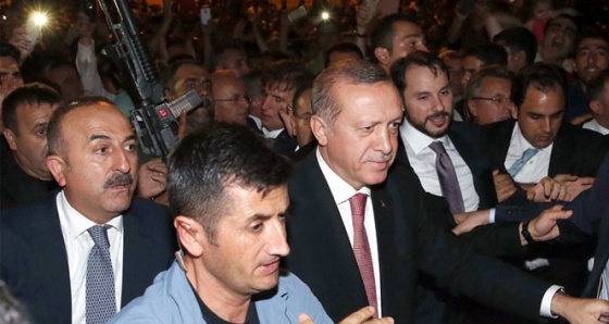 Cumhurbaşkanı Recep Tayyip Erdoğan, 15 Temmuz darbe girişimini protesto etmek için Cumhurbaşkanlığı Külliyesi önünde ‘demokrasi nöbeti’ tutan vatandaşlarla biraraya geldi.