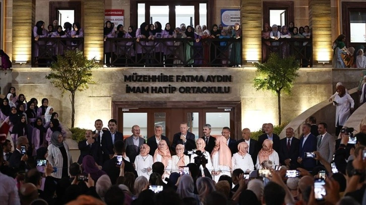 Erdoğan, "Sanayi ve Teknolojinin Merkezi Kocaeli'ye Değer Katanlar Ödül Töreni" ile "TOKİ Konutları, KYK Yurtları, Büyükşehir Belediyesi Yatırımları ve Fabrikaları ile Yapımı Tamamlanan Diğer Projelerin Toplu Açılış Töreni" için geldiği Kocaeli'de, Müzehhibe Fatma Aydın İmam Hatip Ortaokulunun açılış törenine katıldı.