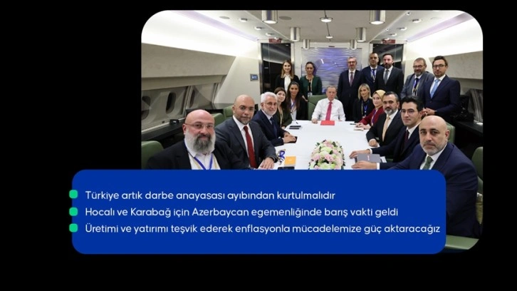 Cumhurbaşkanı Recep Tayyip Erdoğan, Nahçıvan dönüşü uçakta gazetecilerin sorularını yanıtladı.