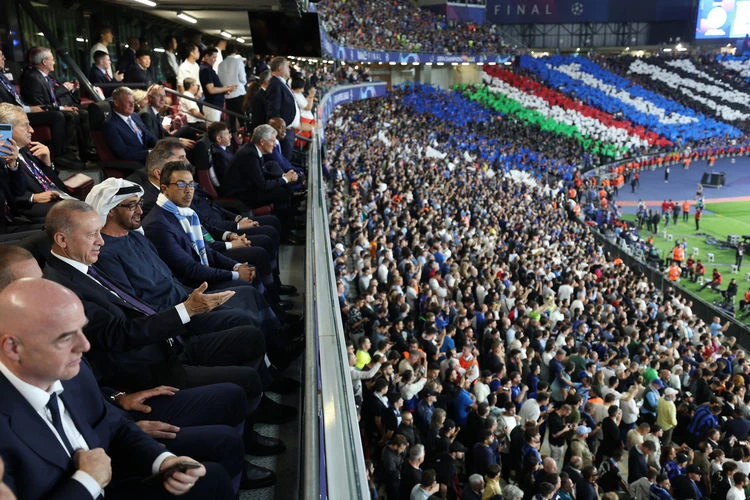 UEFA Şampiyonlar Ligi final maçını, Cumhurbaşkanı Erdoğan'ın yanı sıra BAE Devlet Başkanı Muhammed bin Zayid Al Nahyan, Macaristan Başbakanı Victor Orban, Slovenya Başbakanı Robert Golob, Ürdün Başbakanı Bişer Al-Hasavneh, Libya Başbakanı Abdülhamid Dibeybe, Karadağ Başbakanı Dritan Abazovic ve İtalya Meclis Başkanı Ignazio la Russa da izledi.