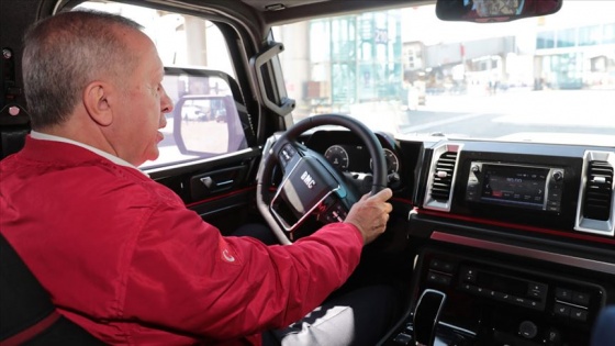 Yetkililerden araca ilişkin bilgiler alan Erdoğan, daha sonra sürücü koltuğuna geçti. İncelemesini araç içerisinden sürdüren Erdoğan, bir süre aracı kullandı, sonrasında da aracı imzaladı.