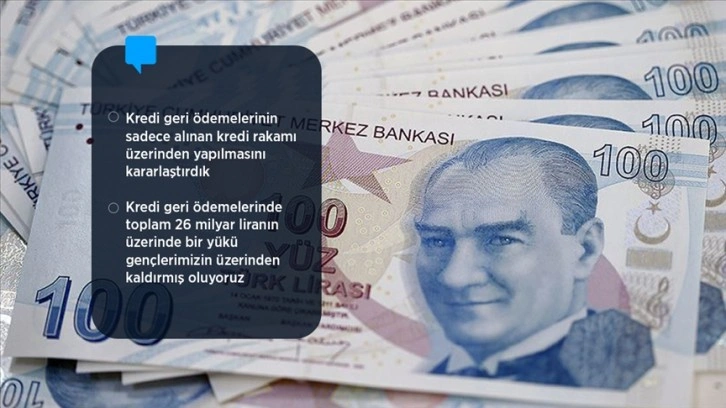 "Aldığımız bu kararla kredi geri ödemelerinde toplam 26 milyar liranın üzerinde bir yükü gençlerimizin üzerinden kaldırmış oluyoruz.