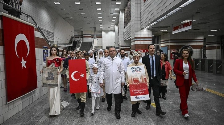 Söğütözü'nden Ulus'a kadar metroya binen ve Ulus Metrosu'ndan Birinci Meclis'e yürüyen Özel 100. Yıl Hastanesinin çalışanları, Ankara Üniversitesi Beypazarı Meslek Yüksekokulu öğrencilerinin hazırladığı Cumhuriyet döneminin sağlıkçı kıyafetlerini giydi. Sağlık çalışanlarına eşlik eden modeller de Cumhuriyet dönemi kıyafetleriyle sağlıkçılara katıldı.