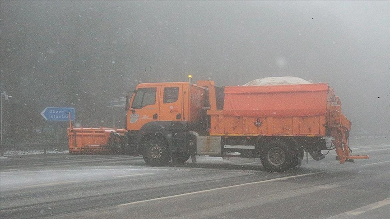 Yağış ı n ardından kısmen beyaz örtüyle kaplanan ve sisin de hakim olduğu güzergahta Karayolları ekipleri, kar küreme ve tuzlama çalışması yürütüyor.