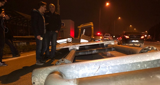 Çıkan gürültüden dolayı korkup dışarı çıktıklarını ifade eden Yavuz Ersoy, "Hareket halindeki kamyonun, hava hortumu patlaması üzerine damperi açılmış. Sürücüde bunu fark etmeyince, yol tabelasına çarptı. Çıkan gürültüden dolayı bizde çay bahçesinden dışarı çıktığımızda, tabelaların yere indiğini gördük." diye konuştu.