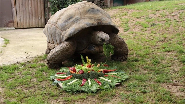 "Türkiye'nin en yaşlı kaplumbağası" olarak bilinen ve nesli tükenme tehlikesi altındaki türlerden olan dev Aldabra kaplumbağası Tuki için doğum günü etkinliği düzenlendi.
