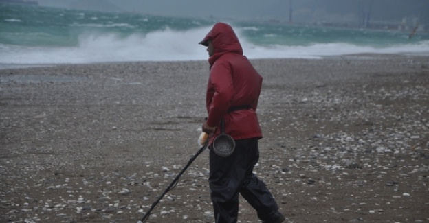Antalya’da sabah saatlerinden itibaren etkili olmaya başlayan fırtına, Konyaaltı sahilinde altın arayanlara ekmek kapısı oldu.