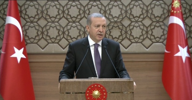 Cumhurbaşkanlığı Külliyesinde muhtarlarla bir araya gelen Erdoğan, Ankara saldırısının ardından ‘katil devlet’ diyen Selahattin Demirtaş’ı da topa tuttu. Erdoğan, “Terör örgütü tüm silahlarının üzerine beton dökene, hepsi sınırlarımız dışına çıkana kadar bu mücadele sürecektir. Kimse bizden ara vereceğimizi beklemesin. Hedef 1 Kasım değil, 1 Kasım’dan sonra da bu operasyonlarımız devam edecektir. İşte bakın bu sabah DAEŞ terör örgütüne karşı yapılan operasyonlarımız. Bizim için PKK farklı, DAEŞ farklı değil. Hepsi aynı bunların. Garın önünde yapılan eylemi de bunlar ortaklaşa yapmıştır. Ama terör örgütünü arkasına alan partinin ‘katil devlet’ demesini anlıyorsunuz değil mi? Niye, yavuz hırsız ev sahibini bastırırmış. Bunlar yavuz hırsız. Biz de diyoruz ki el ele vereceğiz. Bunların hiçbir iftiralarına izin vermeyeceğiz. Vakti saati günü geldiğinde herkes terör karşısında tutumunun hesabını hem vicdanlara hem hukuka hem de tarihe verecektir. Bu hesaptan kaçış yok. Bu dünyada kaçsanız bile ebedi alemde kaçış yok” ifadelerini kullandı.