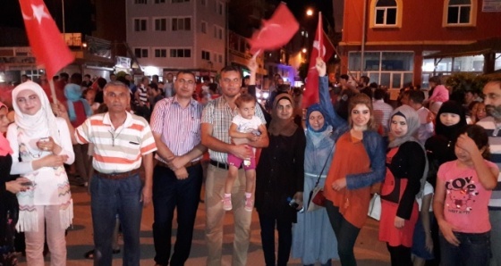 Dün akşam Cumhuriyet Meydanı’nda araçlarına Türk bayraklarını asan yüzlerce Erzinli vatandaş, Hanifi Soylu Bulvarı başlangıcından Erzin’e doğru hareket etti. Tüm mahalleleri siren sesleriyle dolaşan konvoy daha sonra Cumhuriyet Meydanı’nda demokrasi nöbeti için toplanarak darbecilere karşı tek vücut olup slogan attı.
