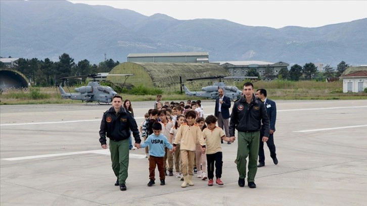 Deniz Hava Komutanlığındaki 351. Helikopter Hat Bakım Komutanlığına gelen Şirinsulhiye İlkokulu öğrencileri, park sahasındaki Süper Kobra ve Seahawk helikopterlerini inceledi.