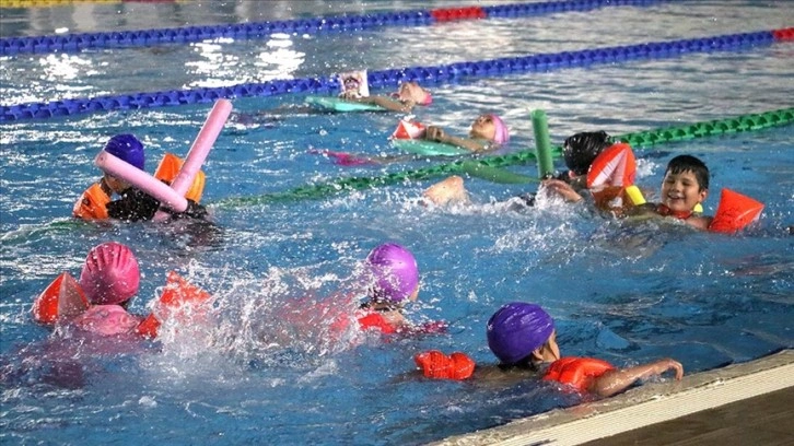 Yüzme öğrenerek iyi birer yüzücü olma heyecanıyla kulaç atan çocuklar, hem spor yapıyor hem de suda keyifli zaman geçiriyor.