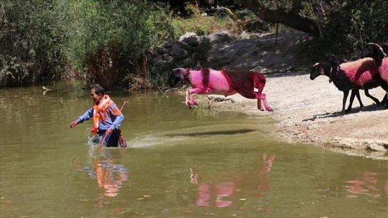 Koyununun nehre girmesi ve karşı kıyıya ulaşması için çabalayan çobanlar, ıslıklar ve çıkardıkları seslerle hayvanları yönlendirmeye çalıştı.