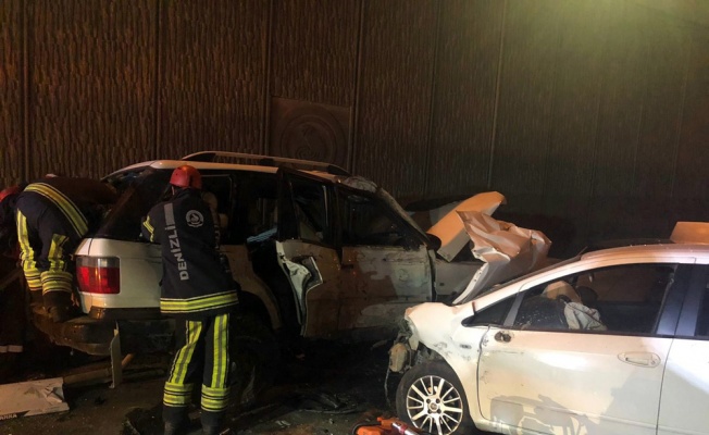 Denizli’de alt geçitte meydana gelen trafik kazasında 4 araç birbirine girerken, çarpışmanın etkisiyle üst üste çıkan araçlarda 1 kişi yaralandı.