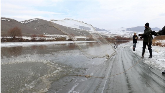 Tutak ilçesine bağlı 40 haneli Batmış köyünde yazın tarım ve hayvancılıkla uğraşan vatandaşlar, kışın ailelerini geçindirmek için Murat Nehri'nde zorlu balık avına çıkıyor.