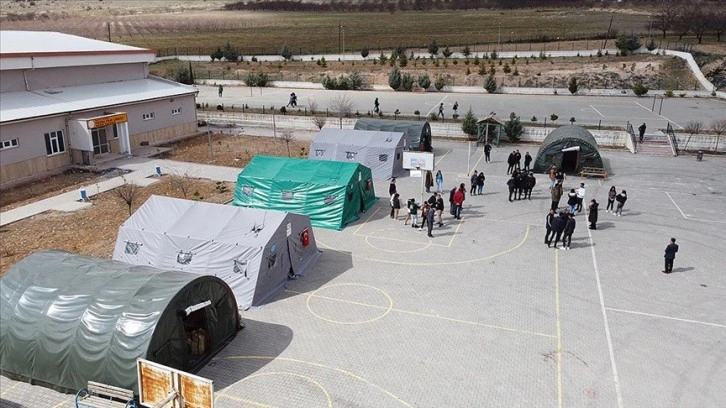 Akçadağ ilçesi Fatih Fen Lisesi bahçesine kurulan çadırlarda 8. ve 12. sınıf öğrencileri, hayallerini süsleyen okulları kazanmak için yaşadıkları zorluklara rağmen derslerini aksatmadan sürdürüyor.