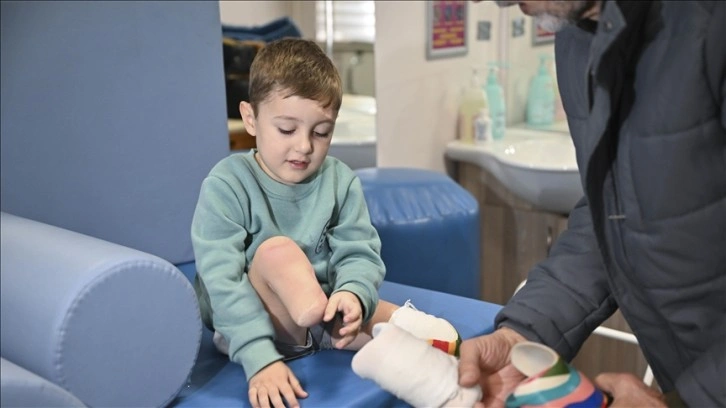 Kahramanmaraş merkezli depremlerde oğlu ve gelinini kaybeden Hüseyin Civan'ın, enkazdan sağ çıkan 4 yaşındaki torunu Eymen, Ankara Üniversitesi Cebeci Hastanesi'nde sağ bacağına takılan protezle yeniden yürümeye başladı.