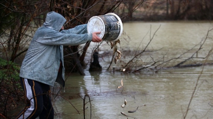 Kahramanmaraş merkezli 6 Şubat'taki depremlerin etkilediği Malatya'nın Akçadağ ilçesindeki depremzedeler, yoğun yağışlarda taşan göletten sürüklenen balıkların yaşaması için mücadele verdi.